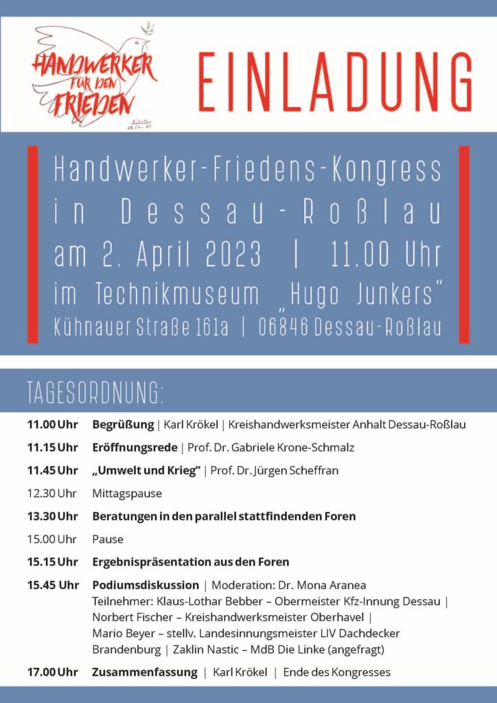 die Einladung zum “Handwerker-Friedens-Kongress.