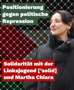 Wir haben in mehreren Artikeln die Hetzjagd verurteilt, die auf die internationale Solidarität der Linksjugend solid mit den Palästinenser:innen eröffnet wurde. Die Hetzjagd ist die Speerspitze eines Narrativs, das jede grundsätzliche Kritik und Verurteilung des rassistischen zionistischen Projekts Israel als „antisemitisch“ zu disqualifizieren versucht. Nicht zuletzt sind der Linken Jugendorganisation große Teile der eigenen Partei … Weiterlesen