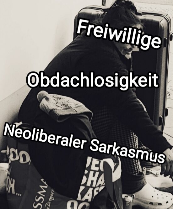 Niemand ist „freiwillig obdachlos“. Niemand lehnt eine eigene, schöne, menschenwürdige Wohnung ab und entscheidet sich aus Lust und Neigung dafür, dass er lieber im Gebüsch im Park erfrieren will. Diese eigene, schöne, menschenwürdige Wohnung bekommt in der BRD, die sich bewusst gegen Housing first und für das Malträtieren und indirekte Ermorden von Obdachlosen als abschreckendes Beispiel entschieden hat, aber halt niemand angeboten. Die „freiwillige Obdachlosigkeit“ ist kein reales Phänomen, sondern ein Konstrukt, das die Falko Lieckes und ähnliche Menschenhasser dieser Welt sich ausgedacht haben, um nicht direkt aussprechen zu müssen, dass man Obdachlose halt als Abfall betrachtet, der außer Sichtweite geschafft werden muss.