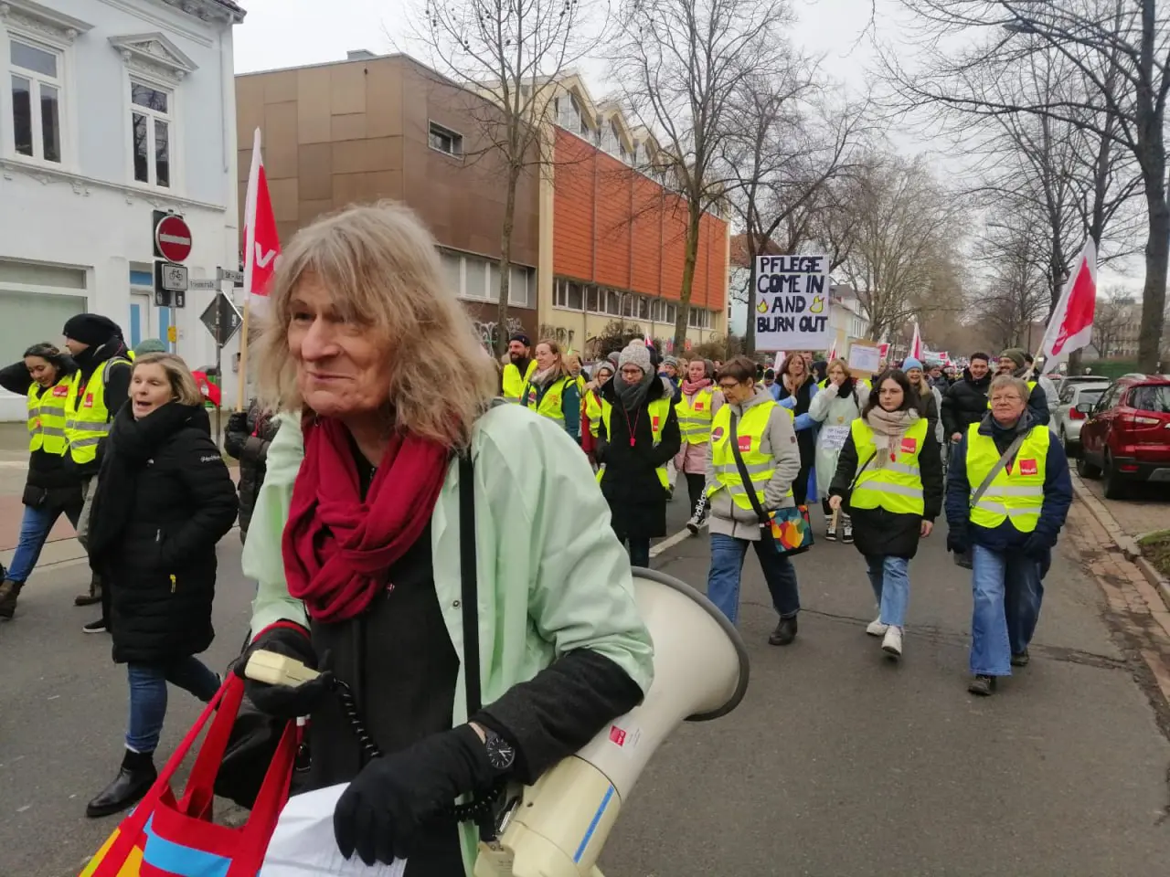 Im Herbst 2021 war ich einfaches Betriebsratsmitglied. Ich habe damals viele Kolleg*innen bei Gesprächen bei den Vorgesetzten außerhalb meiner Arbeitszeit begleitet, ganz einfach, weil diese Kolleg*innen wussten, ich setze mich für sie ein. Ein paar Überstunden habe ich damals aufgeschrieben. Der Betriebsratsvorsitzende Herr Kölsch war der Meinung, dies wäre Arbeitszeitbetrug. Ich dürfte nur die Kolleg*innen begleiten, wenn der Betriebsrat in einer Sitzung mit Mehrheit dafür gestimmt hätte. Wie unwissend so ein langjähriges Betriebsratsmitglied ist und dann auch noch als Vorsitzender! So hatte er mich bei der Direktion angeschwärzt. Herr Novy vom Betriebsrat hatte mich damals beim Gespräch bei der Direktion begleitet. Er hatte mich hinterher regelrecht gedrängt, ich sollte mich für mein Fehlverhalten (?!) entschuldigen, dann käme ich mit einer Abmahnung davon. Sofort setzte danach bundesweiter Protest gegen meine Freistellung vom Patientenbett ein. Wie jetzt im Frühjahr hatten sich sehr viele Kolleg*innen und Gruppen bundesweit mit mir solidarisiert. Dies ist im Nachklang passiert, nachdem ich ein paar Wochen vorher für die Betriebsratswahlen 2022 eine Listenwahl beantragt hatte. Sofort wurde ich damals vom Betriebsrat verteufelt und stellten mich in der Belegschaft als „Unruhestifterin“ an den Pranger.