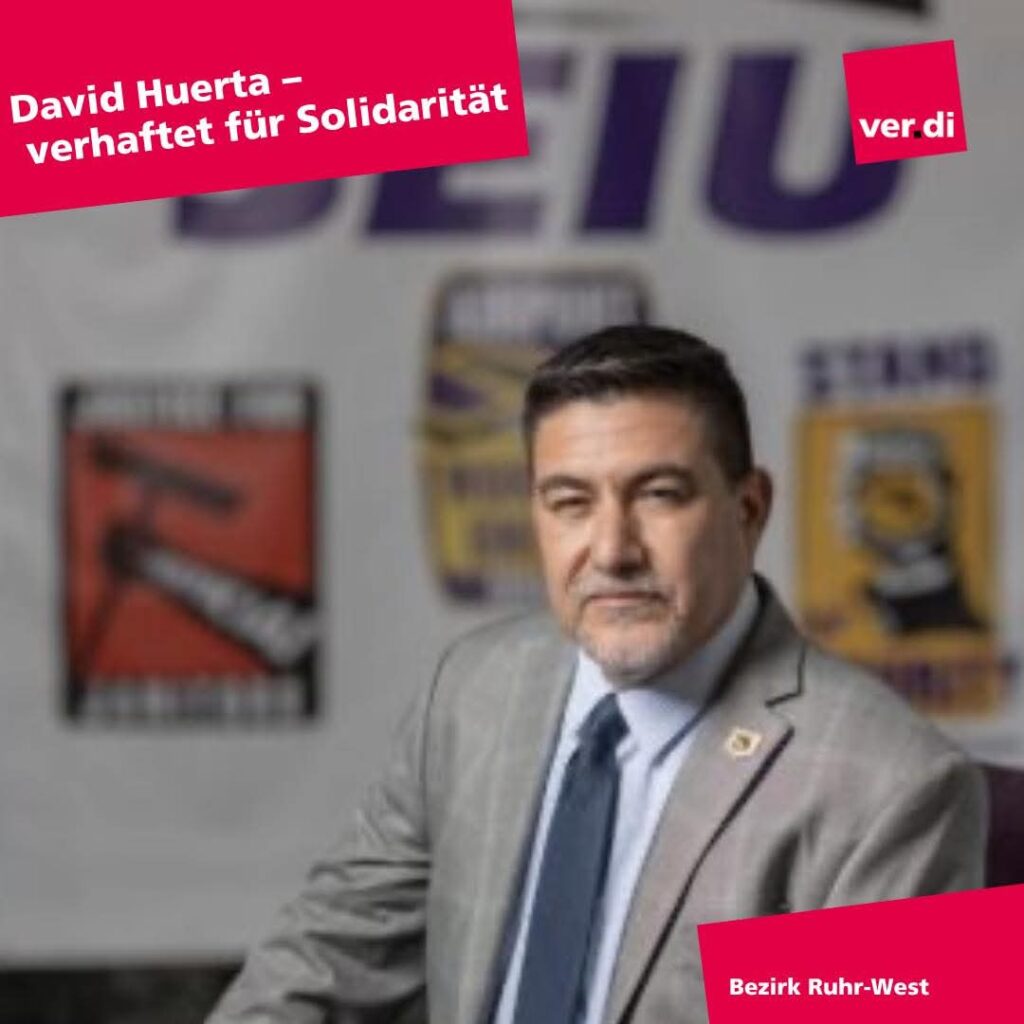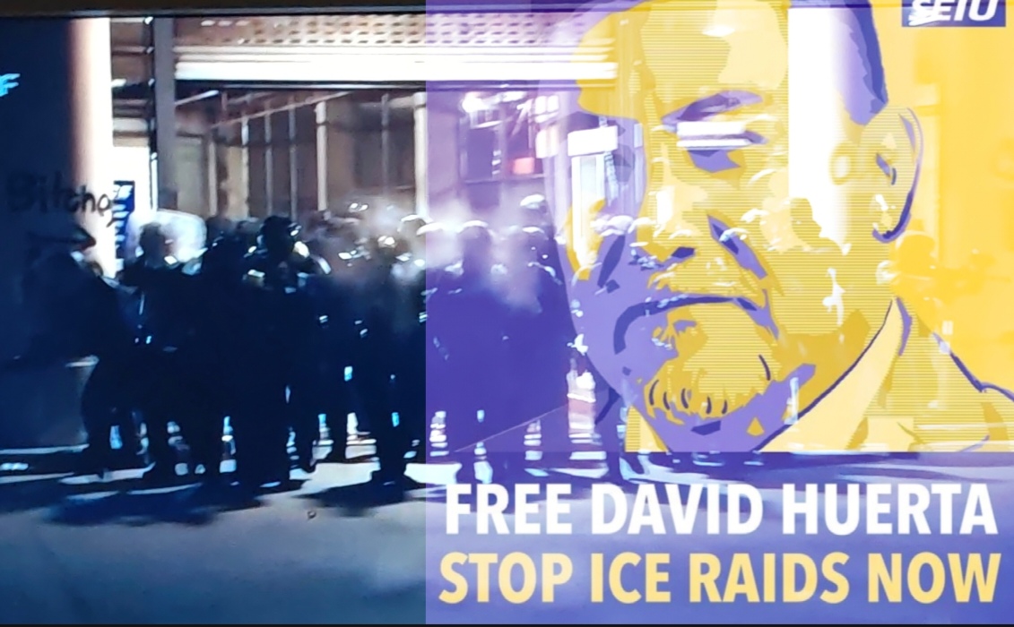 So war es auch kein Zufall, das David Huerta, Präsident der Dienstleistungsgewerkschaft SEIU California, von ICE Bullen zusammengeschlagen und verhaftet wurde. Dank einer internationalen Kampagne ist der Kollege Huerta wieder frei.