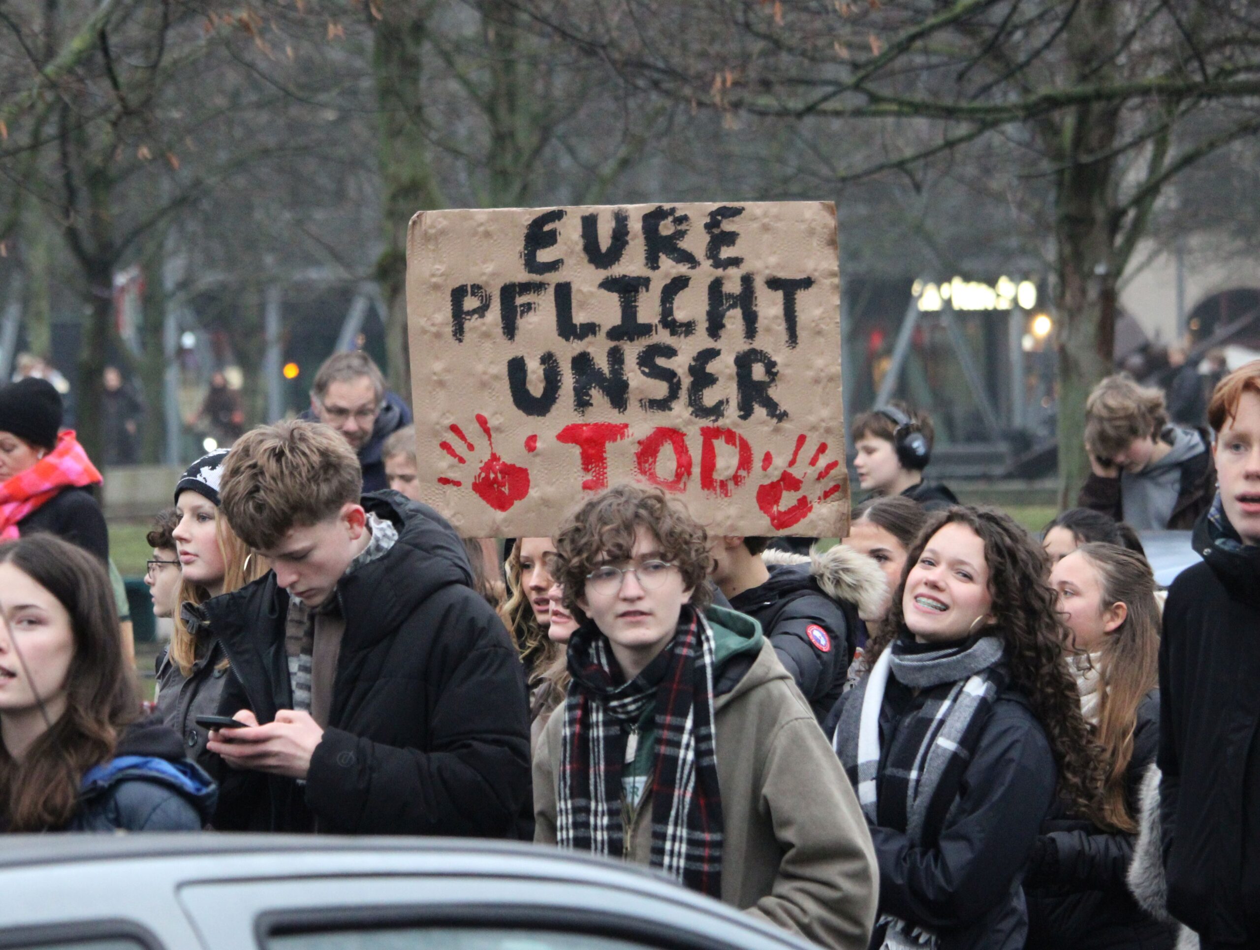 In Berlin haben sich am Freitag tausende Schüler:innen am bundesweiten Schulstreik gegen die Wehrpflicht beteiligt.