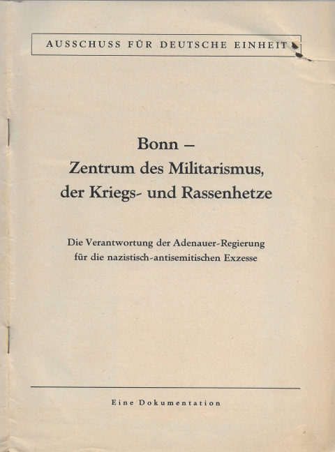 Hier sprechen Tatsachen um die Menschen zum Handeln zu bewegen. Zu diesem Zwecke wurde diese Schrift zusammengestellt, getragen von der Verantwortung gegenüber den Toten des Hitlerterrors und des Krieges; beseelt vom unbeugsamen Willen, die demokratischen Rechte zu wahren.