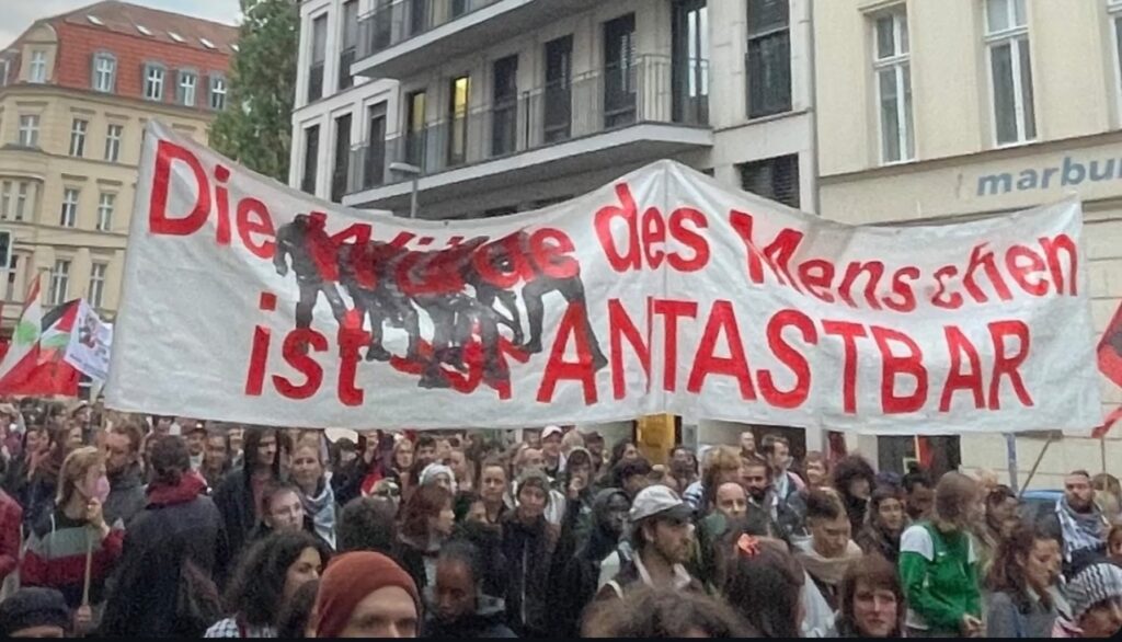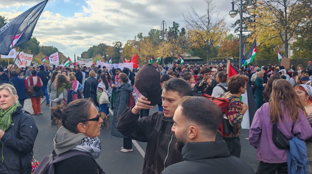 Die große Mehrheit der deutschen Bevölkerung lehnt – anders als die politsch Verantwortlichen – das Vorghen Israels schon seit Monaten ab. Demonstrant:innen und Redner:innen am 11. Oktober betonten: „Jetzt erst recht. Denn Israels Besatzung und Apartheid bleibt bestehen und Palästinenserinnen wird nach wie vor ihr Selbstbestimmungsrecht verwehrt. Solange haben sie volles Völkerrecht auf Widerstand!“