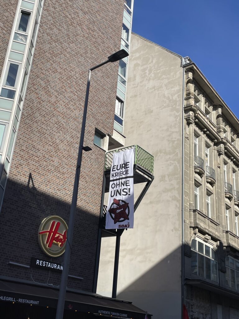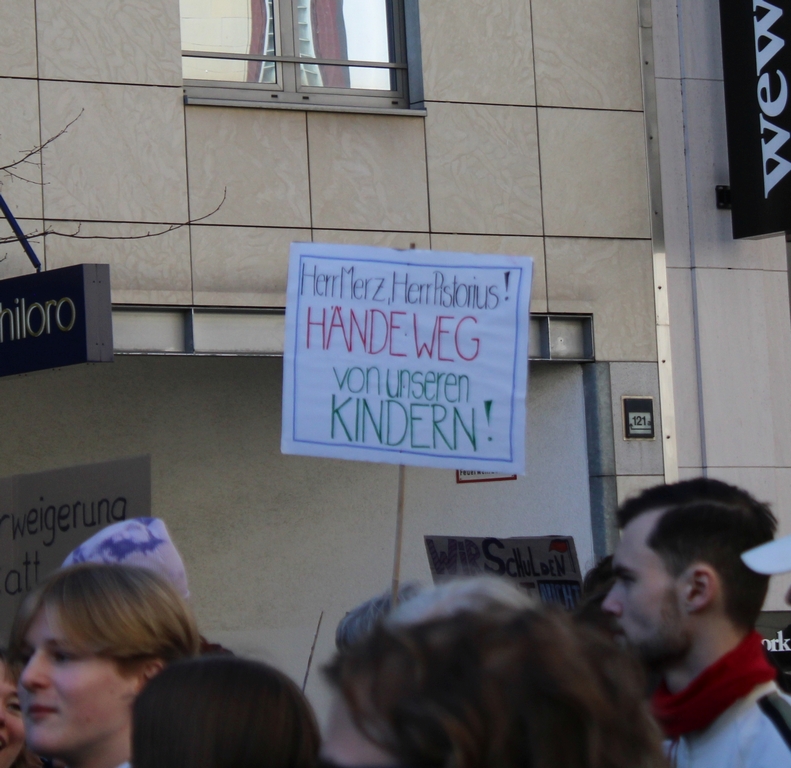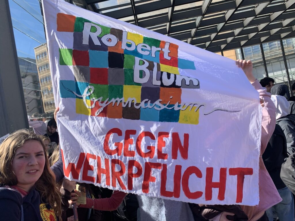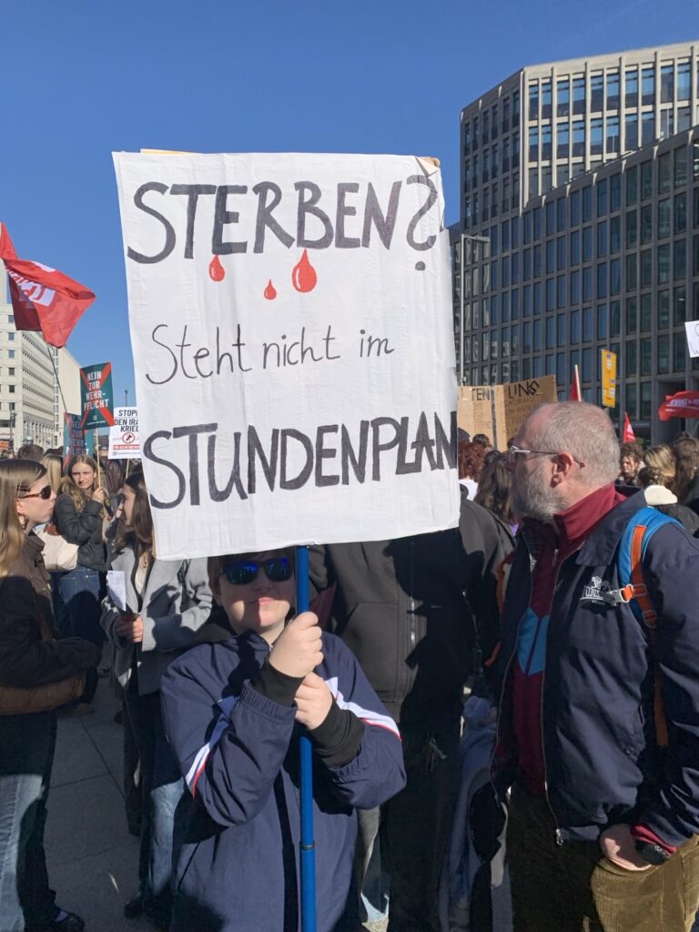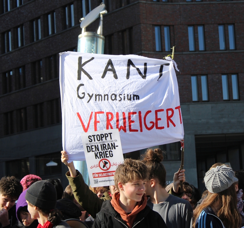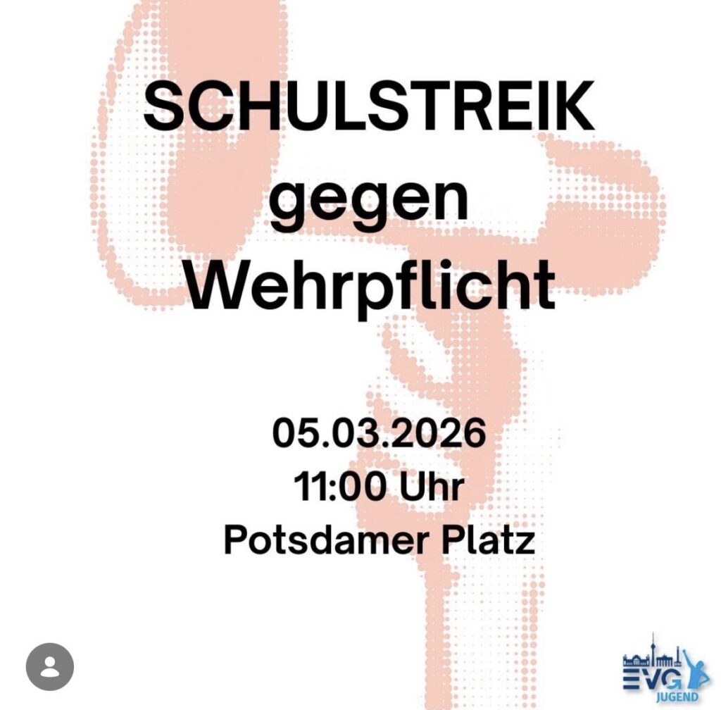 Die Schüler:innen scheinen sich jedenfalls nicht einschüchtern zu lassen und planen bereits den nächsten Streiktag. Schon kurz vor dem Streik gaben sie bekannt, dass der nächste Schulstreik am 08. Mai 2026 statt finden soll. Es ist zu hoffen, dass sich dann noch deutlich mehr Schüler:innen anschließen und die Bewegung gegen den Militarismus insgesamt wächst. Eine Bundesregierung, die nicht in der Lage ist völkerrechtswidrige Angriffskriege ihrer Verbündeten zu benennen, sondern in Teilen offen mit einem Kriegseintritt gegen Iran kokettiert, macht deutlich, dass dies dringend erforderlich ist. [2] Webseite von Schulstreik und auf Instagram