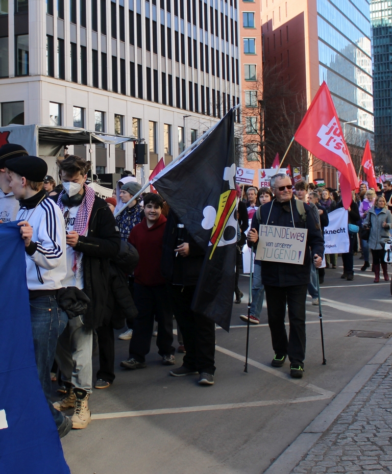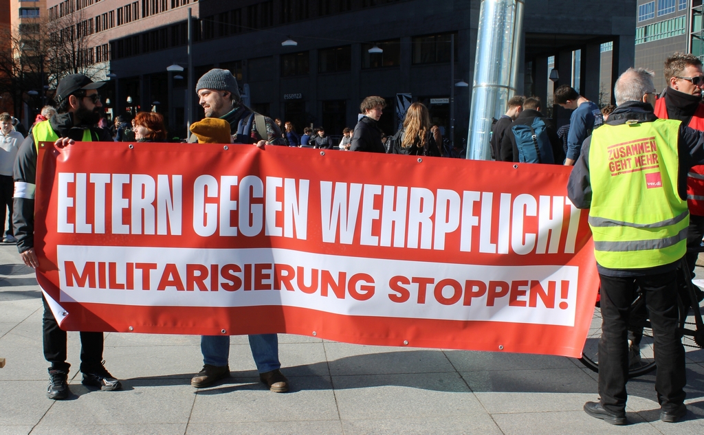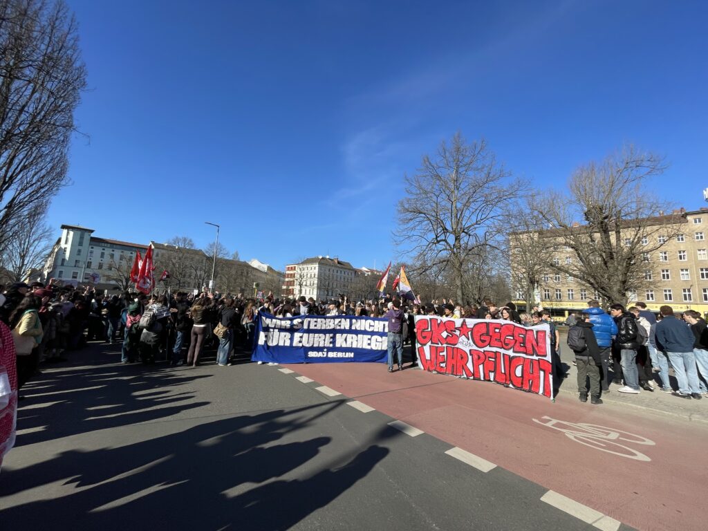 Erneut sind tausende Schüler:innen in über 130 Städten gegen die Wehrpflicht auf die Straße gegangen. Unterstützung erhielten sie dabei von Gewerkschafter:innen und Friedensbewegung. In Berlin beispielsweise von der GEW, der EVG Jugend und dem Arbeitskreis Internationalismus Metall, auch einige Ver.di Westen waren im Demozug zu erkennen. Die Ver.di Jugend hatte sich am Vorabend ebenfalls mit dem bundesweiten Schülerstreik solidarisiert.