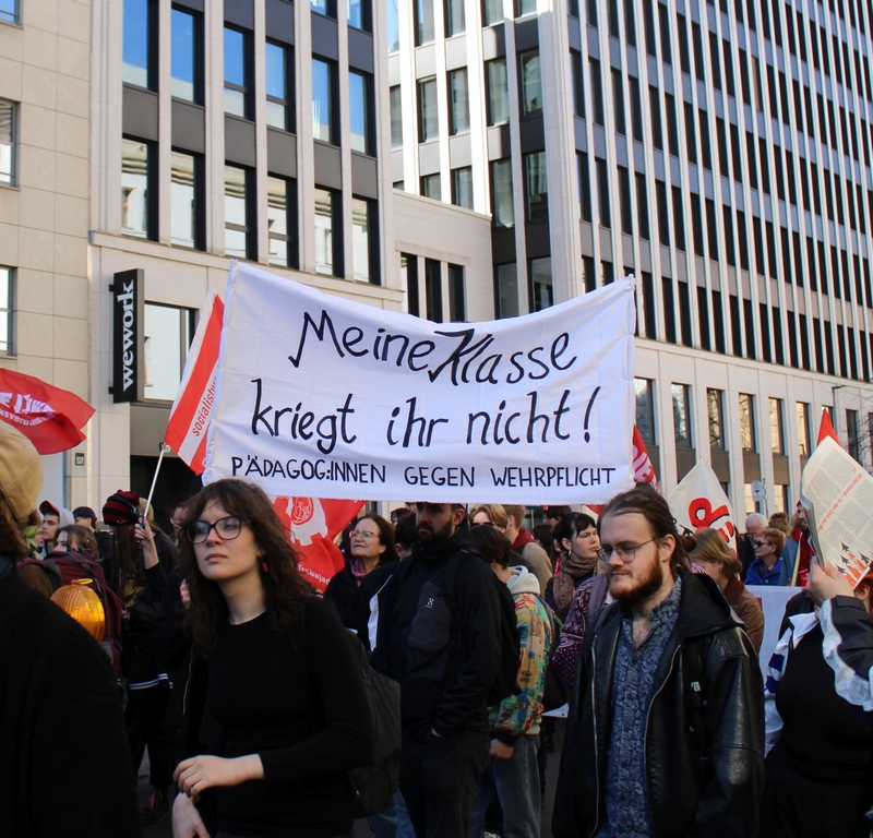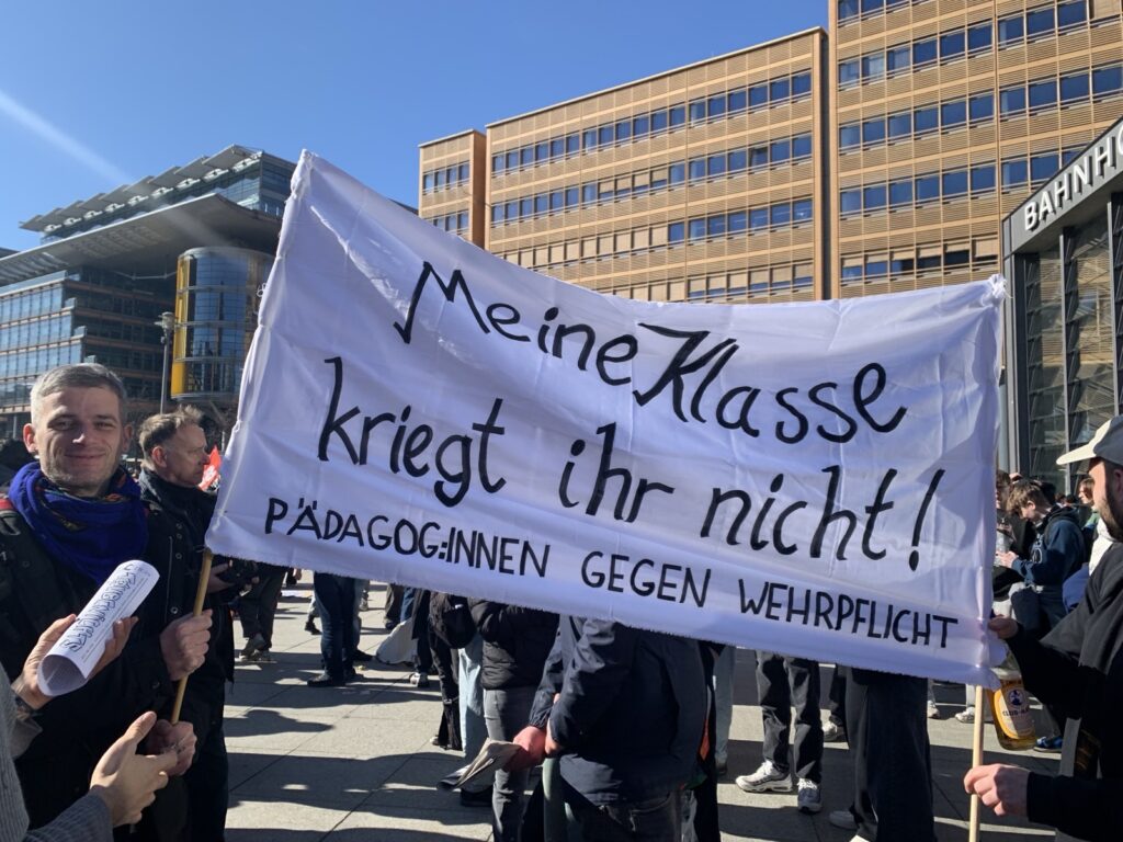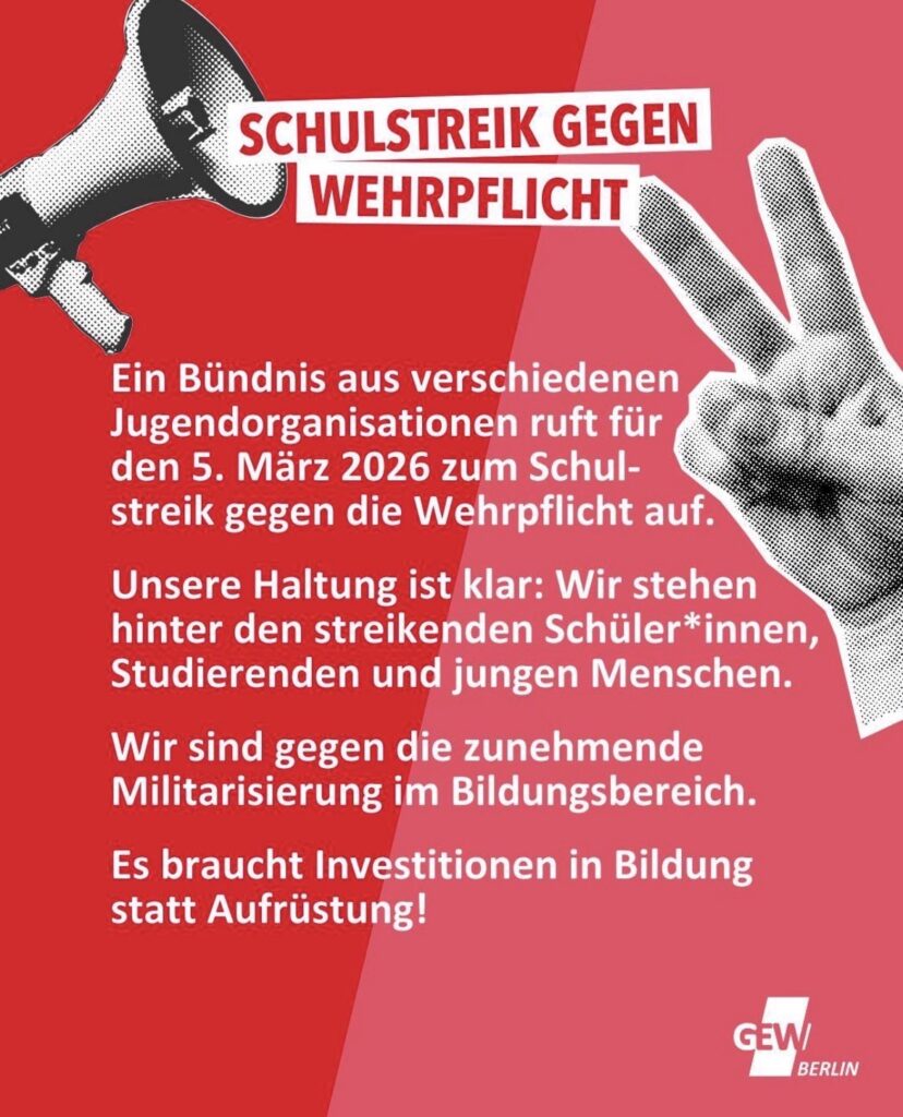 „Als GEW BERLIN sagen wir ganz klar, dass das sogenannte Wehrdienst-Modernisierungsgesetz ein massiver Eingriff in die Lebensplanung und Selbstbestimmung junger Menschen ist! Denn es bedeutet nichts anderes als die Wiedereinführung der Wehrpflicht!“