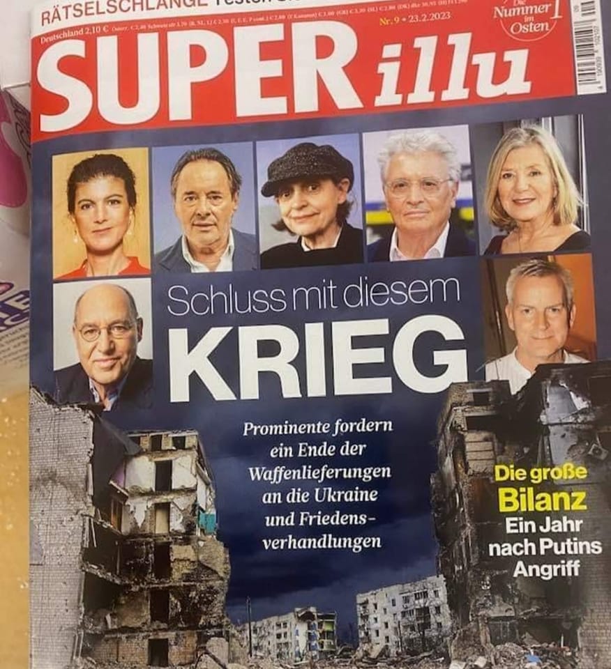 „Diesen Brief schickte die öffentlich-rechtliche ARD-Sendung „Fakt“ an alle ErstunterzeichnerInnen des Manifestes für Frieden. Vorwurf: Die „Abgrenzung nach rechts“ sei den „Initiatorinnen nicht gelungen“. Beleg: Eine „Recherche“, die namentlich neun (!) Männer aus dem rechten Spektrum nennt, die an der Kundgebung am Samstag teilgenommen haben. Neun von 50.000! Hier die Reaktionen der ErstunterzeichnerInnen auf die ARD-Anfrage. „