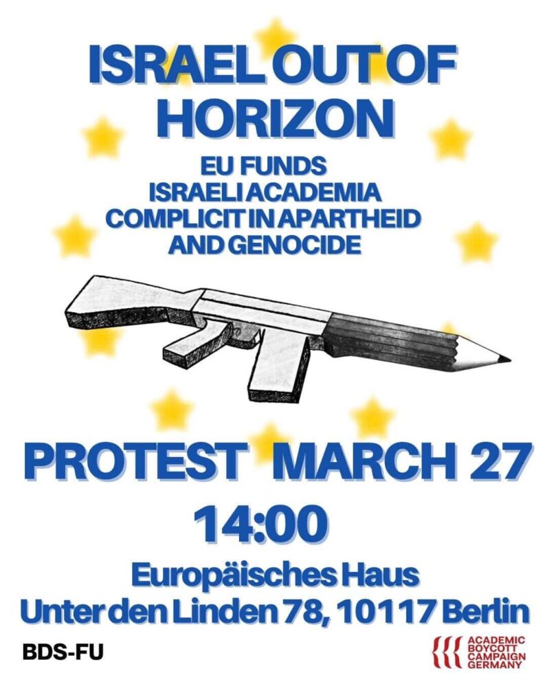 Am 27. März demonstrieren Studierende in über 30 Städten in der gesamten EU, um den Ausschluss Israels aus dem Horizon-Programm zu fordern.