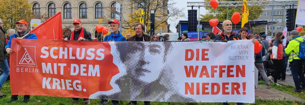 wir treffen uns am kommenden Ostersamstag um 12.50 Uhr mit dem Berta von Suttner-Transpi vor dem Fahrrad-Laden NEWORD3R (Karl Marx Allee 131, zwischen U Weberwiese und U Frankfurter Tor). Der grenzt an den Platz, an dem das KOSMOS-Kino ist. Davor ist der Sammelplatz für die Kundgebung und Demo. Hier ist ein Link zu diesem Bikershop und ein Bild unseres Transparents.