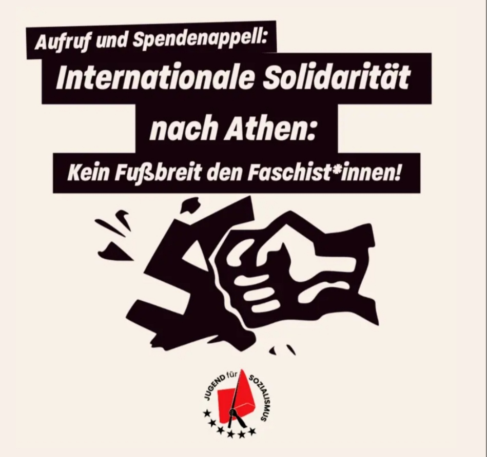 Wir publizieren hier den antifaschistischen Aufruf der Jugend für Sozialismus „Internationale Solidarität nach Athen – keinen Fussbreit den Faschist*innen“ und bitten den Protest gegen den europaweiten Aufmarsch von Rechtsextremen in Griechenland zu unterstützen !