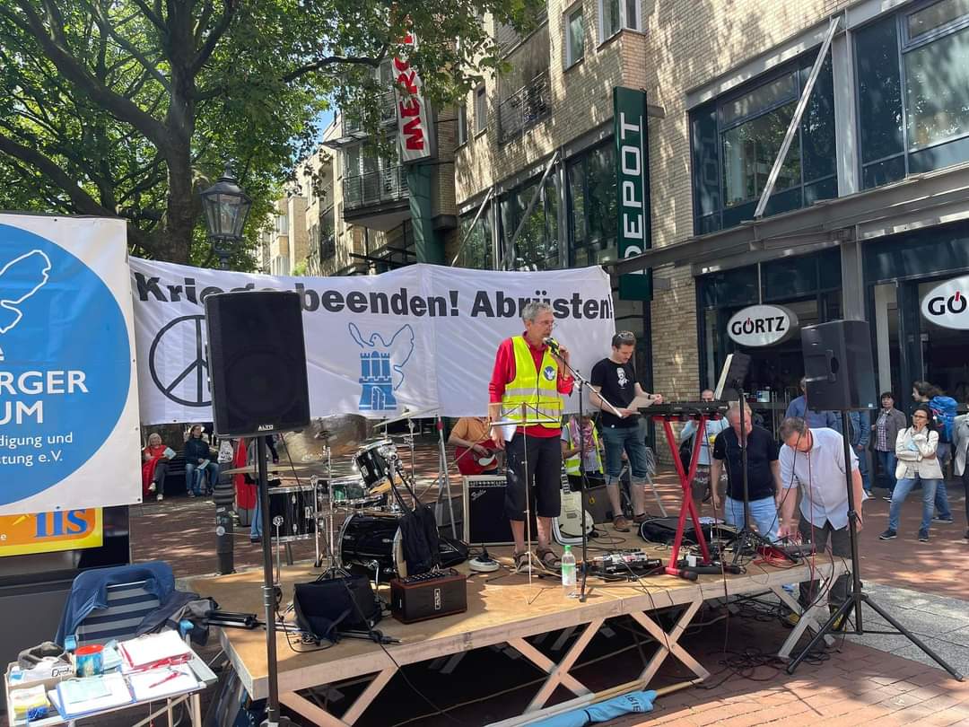 Am Sonntag, den 23. Juni um 14 Uhr, fand eine Kundgebung des Hamburger Forums „Gegen Krieg und Militarismus – Zeit für Abrüstung“ statt. Anlass war der 83. Jahrestag des Überfalls der faschistischen Wehrmacht auf die Sowjetunion. Wir publizieren hier die Rede von Holger Griebner, die u. a. drei Punkte besonders deutlich macht: Zum einen sind faschistisches und militaristisches Gedankengut untrennbar miteinander verwoben. Zum zweiten sind „Kriegstüchtig“ und gleichzeitig „sozialtüchtig“ kaum überbrückbare Gegensätze. Hier bekommt insbesondere die SPD ein grundsätzliches Problem. Zum Dritten geht es um gewaltige geopolitische Interessen und Hegemonieansprüche dabei, die immer gefährlicher aufeinanderprallen. (Peter Vlatten)