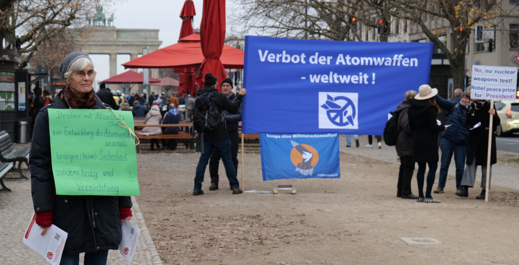 Als Partner von ICAN und zur Bekanntmachung und Durchsetzung des Beschlusses der UNO-Vollversammlung über das Verbot der Atomwaffen führt die Initiative seit Januar 2024 monatliche öffentliche Aktionen durch. Mail: kontakt@mahnwache-atomwaffenverbot.de