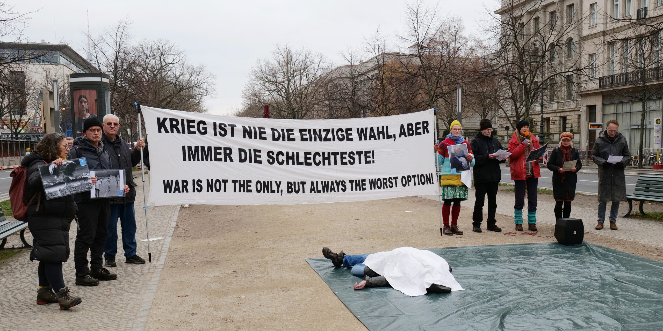 Mittels Flashmob bringen wir den Schrecken jeden Krieges zurück in die Öffentlichkeit und wollen zum Nachdenken und Gesprächen anregen. Wir sind ein loser Zusammenschluss von Menschen aus Berlin, die mit unterschiedlichen Aktionen für Frieden und gegen Krieg aufstehen, da wir davon überzeugt sind, dass das Thema uns alle betrifft und zivilgesellschaftliches Engagement unerlässlich macht. Unser telegram-Kanal: Streetaction4Peace