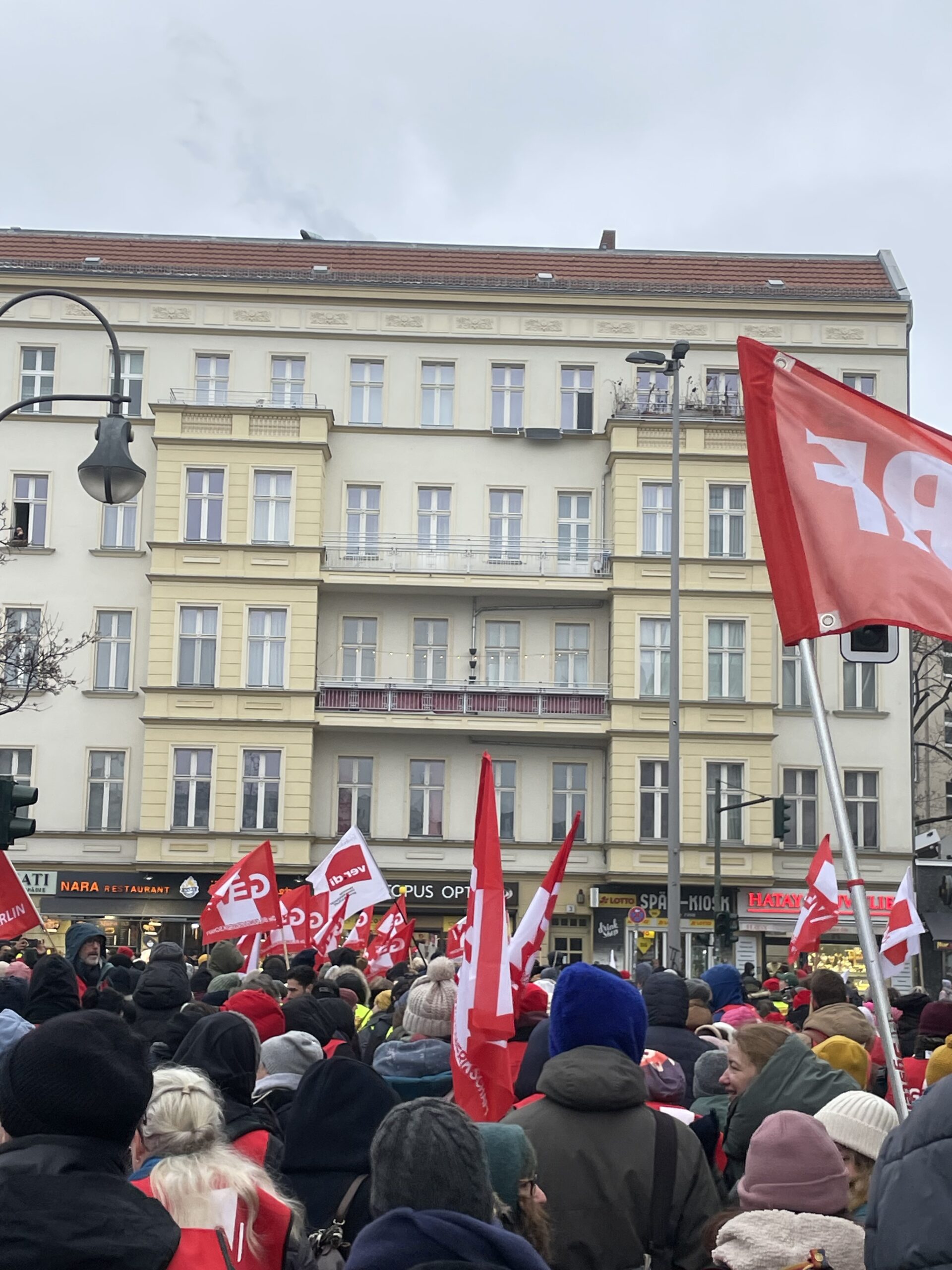 Die GEW Berlin hat sich gezielt gegen das Brandenburger Tor und für eine Demonstration vom Hermannplatz zum Oranienplatz entschieden. An der Demonstration beteiligten sich laut GEW 3.500 Kolleg:innen.
