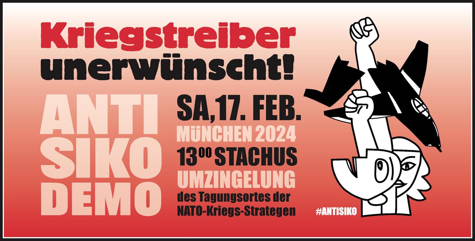 „Deshalb soll die Sicherheitskonferenz nicht ungestört stattfinden. Mit einer Protestkette durch die Fußgängerzone und einer Protestkundgebung zeigen wir friedlichen Widerstand gegen Kriegstreiber und Kriegsprofiteure. Deutschland muss zum Versprechen „Nie wieder Krieg“ zurückkehren.