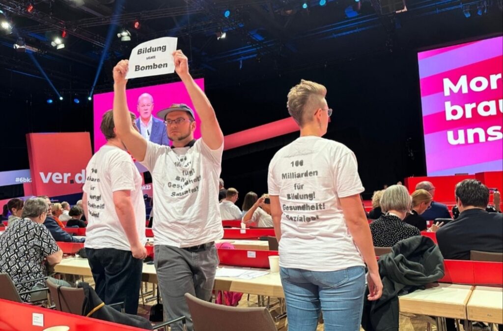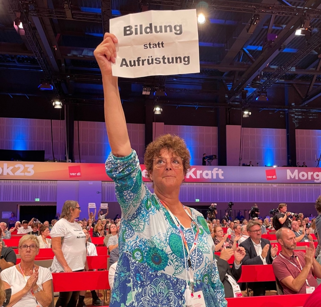 - Berliner Zeitung vom 18.9. „Unruhe bei Gewerkschaft Verdi: Geld für Soziales, nicht Rüstung“
