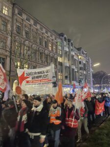 In Berlin haben sich tausende Schüler:innen am bundesweiten Schulstreik gegen die Wehrpflicht beteiligt. Ab 12 Uhr versammelten sich nach Angaben beteiligter Gruppen in der Spitze bis zu 10.000 Schüler:innen.  Ab 16 Uhr schlossen sich auch immer mehr solidarische Erwachsene an, unter ihnen viele Gewerkschafter:innen. Ein Anfang für eine Bewegung von unten gegen Wehrpflicht und Kriegskurs ist gemacht. Daran gilt es anzuknüpfen.