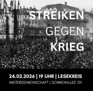 „Mit der Berliner Friedenskonferenz Ende Februar wollen wir als Stadtteilorganistion Hände weg vom Wedding und der Berliner Bund der Kommunist:innen einen Ort der Entrüstung schaffen. Gemeinsam mit Vertreter:innen der Gewerkschaften, der Friedensbewegung, Stadtteilinitativen und der Jugend wollen wir in den Austausch treten. Die Konferenz soll den Ort bieten, gemeinsam zu diskutieren, uns zu vernetzen und dem … Weiterlesen