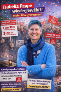 Wir unterstützten die Petition und berichteten: „Engagierte Betriebsrätin von Siemens Energy in Erlangen frist- und grundlos entlassen – Protest auch gegen Behinderung der BR-Kandidatur.“ Der Protest hat sich gelohnt. Die Rechnung von Siemens Energy, aktive Gewerkschafter:innen einzuschüchtern und zu schwächen ist schief gegangen. Die Liste von Isa Paape hat um ein Drittel zugelegt. Jetzt geht … Weiterlesen