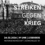 - Streiken gegen den Krieg – LesekreisEs vergeht fast keine Tarifrunde mehr, in der nicht massive Angriffe auf das Streikrecht gefahren werden. Zuletzt wurden von den Kapitalvertretern während der Warnstreiks im Tsrifkampf der öffenlichen Beschäftigten der Länder Regelungen gefordert, die selbst das gewerkschaftliche Streikrecht vollkommen aushebeln. Ein politischres Streikrecht soll den Millionen Arbeitenden erst echt verwehrt werden. Hierzu eine Veranstaltung mit … Weiterlesen