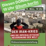 - Nein zum Imperialistischen Krieg & zur islamischen Republik – Gespräch mit iranischen Aktivist:innenForum Gewerkschaftliche Linke Berlin legt Euch den Besuch dieser Veranstaltung ans Herz. Wir erhoffen eine gute Gelegenheit, einen Einblick in die vom westlichen Imperialismus unbeeinflusste iranische Oppositionsvewegung zu erhalten. VERANSTALTUNG Nein zum Imperialistischen Krieg & zur islamischen Republik Gespräch mit im Exil lebenden iranischen Aktivistinnen von Prison’s Dialogues & Roud Collective zur aktuellen Situation im … Weiterlesen
