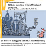 - Fällt das autoritäre System Mitsotakis?23. April 2026 * Regenbogenkino, Lausitzer Str. 21a, 19.30 Uhr————————————————————-Im Moment spitzen sich die Ereignisse bezüglich mehrerer großer Skandale zu. Beim Überwachungsskandal, wegen des Zugverbrechens und wegen des EU-Agrarsubventionsskandals laufen gerichtliche Verfahren, die letztendlich zum Ende des Systems Mitsotakis führen könnten. Kyriakos Mitsotakis schuf eine neue Art von Regime in Griechenland. Mit seiner Amtsübernahme hat er … Weiterlesen
