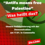 Die Angriffe auf Venezuela brechen klar mit dem Völkerrecht. Den USA geht es um Macht, Öl und Geld! Die Linke und Bloque Latinoamericano Berlin rufen auf: Kommt mit uns, um ein Zeichen gegen Krieg und Imperialismus zu setzen. Freitag, 9. Januar 16 Uhr, Kundgebung vor der US Botschaft Als Forum Gewerkschaftliche Linke unterstützen wir diesen … Weiterlesen - „Antifa means free Palestine“