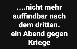 - ….nicht mehrauffindbar nach dem dritten..ein Abend gegen Kriege !Einladung zu einem Abend gegen Kriege mit Gina Pietsch und Bardo Henning Lieder und Texte am 30. Mai 2024 – 19 Uhr – Galerie 100 – Konrad-Wolf-Str. 99 Das große Karthago führte drei Kriege.Es war noch mächtig nach dem ersten,noch bewohnbar nach dem zweiten. Es war nicht mehr auffindbar nach dem dritten. Als ich jung … Weiterlesen