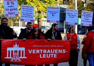 - Mercedes Beschäftigte fordern gewerkschaftliche Streiks gegen permanenten Stellenabbau!Vor fast genau einem Monat hat eine Gruppe aktiver Kolleginnen und Kollegen aus dem Werk Berlin Marienfelde – „Autoarbeiter für eine kämpfende IG Metall“- ein Flugblatt mit dem Titel „Das Massaker an Arbeitsplätzen in der Industrie muss aufhören! Stoppen wir es jetzt! Auch in Berlin Marienfelde!“ Wir berichteten über die Aktion: „Den Kolleg:innen ist der … Weiterlesen