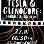 - Tesla X Glencore: Globale Ausbeutung für die Elektromobilität -Film und Diskussionvon Peter VlattenTesla X Glencore: Globale Ausbeutung für die Elektromobilität Film Vorführung und Diskussion 27.11.2025 ab 18:30 Uhr, Regenbogencafé Neukölln Lausitzer Straße 22A Der Rohstoffkonzern Glencore beutet weltweit Ressourcen aus. Besonders dramatisch sind die Folgen in Peru: Durch die Kupferminen werden Landstriche verwüstet, Wasserquellen vergiftet und Menschen verfolgt oder in den Tod getrieben. Das Kupfer landet unter … Weiterlesen