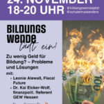 - Unterfinanzierung von Bildung in Deutschland und Berlinvon Konstantin KieserFür den 24. November 2025 lädt die Initiative „Bildungswende Jetzt!“ zu einer digitalen Veranstaltung zur Unterfinanzierung von Bildung in Deutschland und Berlin ein. Die Initiative ist in mehreren Bundesländern aktiv und kämpft für ein gerechtes und inklusives Bildungssystem. Im Bündnis mit Gewerkschaften und Interessensvertretungen wurden in den vergangenen Jahren mehrere erfolgreiche Protestaktionen organisiert.