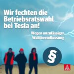 - Tesla Betriebsratswahl: „Das war Union Busting in Hochpotenz“ – das darf so nicht stehen bleiben!von Peter VlattenTesla Betriebsratswahl: „Das war Union Busting in Hochpotenz“. Im Vorfeld der diesjährigen BR Wahl hat Elon Musk, der reichste Mensch der Welt, seine ganze ökonomische Macht ausgespielt und mit Investitionsentzug gedroht, sollte die Liste der IG Metall gewinnen. So wird mit Reichtum gnadenlos Demokratie ausgehöhlt. In Grünheide vor Ort hat das Management sich systematisch in … Weiterlesen