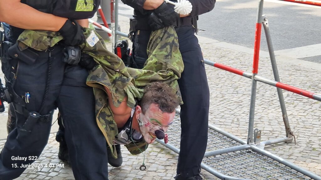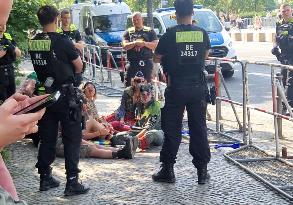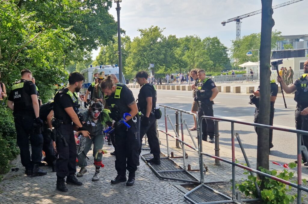 Im Zuge der heutigen Proteste gegen den Veteranentag hat sich in Berlin offensichtlich eine Gruppe von Clowns duch „Streitkräfteveräppelung“ der Staatsgefährdung schuldig gemacht.