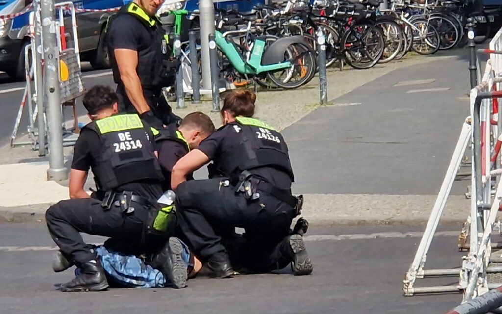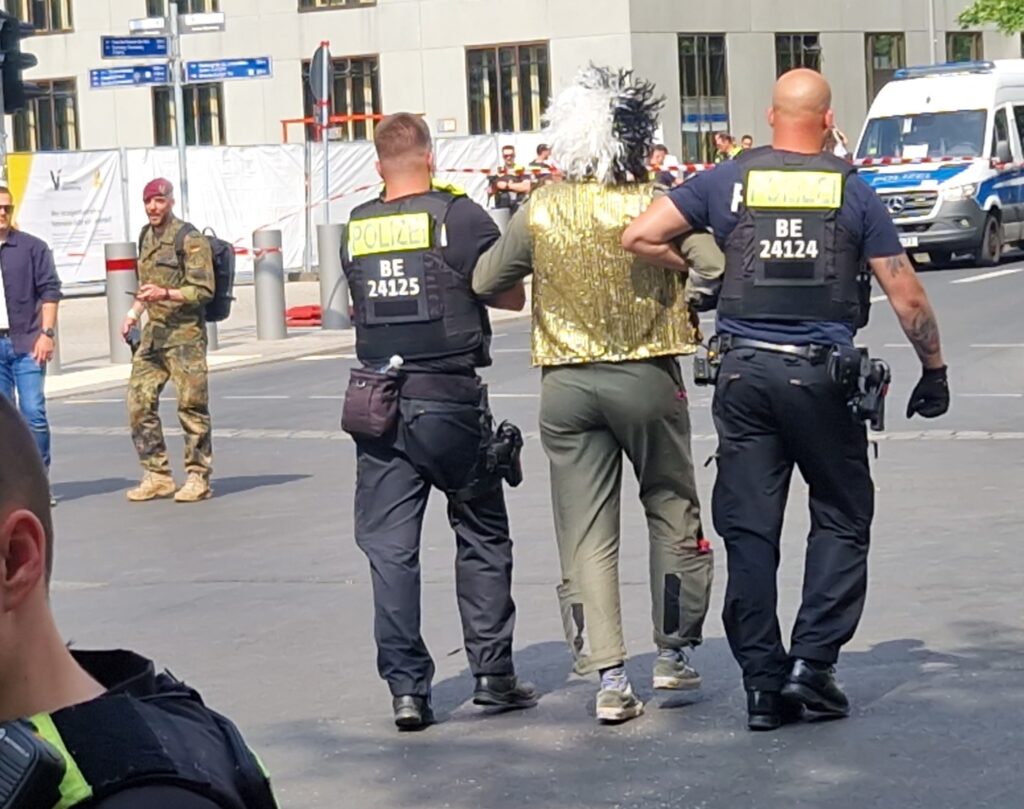 Die durch propälästinensische Proteste hochgradig sensibilisierte und in der Abwehr verdächtiger Symbole hocherprobte Berliner Polizei (bei rechtsextremen Symbolen zeigt sie sich durchaus auch „flexibel“) erkannte sogleich, dass diese Leute die deutsche Obrigkeit nicht ernst nehmen und deren Staatsräson untergraben könnten. Ausserdem haben diese Leute sicherlich etwas zu verbergen. Warum denn sonst diese Maskerade und aufdringliche Bemalung?